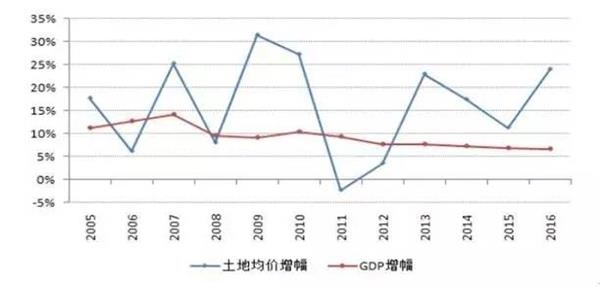 图1 我国土地成交均价增幅与 GDP增幅走势