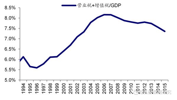 从纵向的历史演变看,我国企业税率不仅没有增加,反而有所降低。福耀玻璃等传统制造业近年来感觉到盈利能力大不如前,这是因为近年来我国税率提高了么?回顾历史,我们看到相关税法经过几次改革,税率不仅没有提高,反而有所降低。在我国的各种税目中,企业所得税和增值税是企业负担最大的两个税种,从税收收入占比可以看出,2015年两者占比分别为22%和25%。企业所得税是企业负担且税率较高的一大税种,而增值税虽然纳税义务人不是企业,但是由于跟无增值税的国家相比实际上有增值税是变相提高了商品价格,其实也算是加大企业负担的一个税种。所有下面我们将重点回顾企业所得税和增值税的发展历史。企业所得税方面,90年代初开始我们分别建立了外资企业所得税和内资企业所得税,两者的基本税率均为33%,07年人代会审议通过了《中华人民共和国企业所得税法》,08年起内资外资企业税法得到了统一,税率也从此前的33%降到了25%。从上市公司的数据看,08年起我国企业所得税/利润总额大幅下降至20-22%的水平,至今一直较为稳定。增值税方面,93年我国发布《增值税暂行条例》及《实施细则》,建立了规范化的“生产型增值税”,对一般纳税人采用17%、13%、0三档税率,而对小规模纳税人采用6%、4%两档税率。04年开始,我国开始实行由生产型增值税向消费型增值税的转型试点,固定资产进项税额可以扣除,一直到09年1月1日全部转型完毕。12年开始我国实行营改增的转型,至16年5月1日全部转型完毕,此项改革确保所有行业税负只减不增。从宏观税收的角度可以侧面反映税率的变化,我们用财政收入中营业税加增值税总额占GDP的比重当作营业税和增值税的宏观税率。04年之前,随着征收水平的提高以及优惠税率的较少,营业税加增值税占GDP的比重逐年升高;08年我国第一次增值税改革进入尾声,占比开始下降;此后12年开始营改增,宏观税率再次下降。