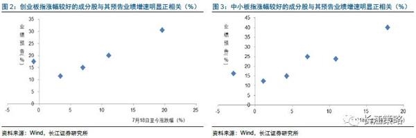 本轮中小创反弹的实质在于中小创绩优股表现出色。前期以“上证50”为代表的绩优低估蓝筹股持续得到市场青睐,涨幅明显,但较大的涨幅也引发市场对绩优蓝筹股估值优势不再的担忧,从而引起近期绩优低估大蓝筹股上涨较为乏力。存量市场资金不断寻找“价值”洼地,引致市场上出现了两个明显的现象:1)业绩匹配度较高的周期和金融持续得到资金青睐,表现出色;2)中小创中报业绩预告增速较高的个股涨幅居前。