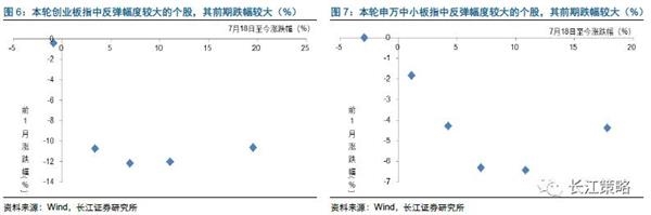 本轮中小创反弹具有较强的“超跌反弹”属性。无论是创业板,还是中小板,我们看到从7月18号本轮反弹以来,前期跌幅较大的个股,反弹幅度均较为明显,这表明本轮反弹具有较强的“超跌反弹”属性。