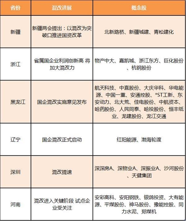 从目前已召开“两会”的省份可以发现,国企改革成为焦点,多个省市将今年视为国企改革的关键年份。随着央企层面混改方案的陆续公布,地方国企改革概念更是值得关注,炒地图行情有可能重来。
