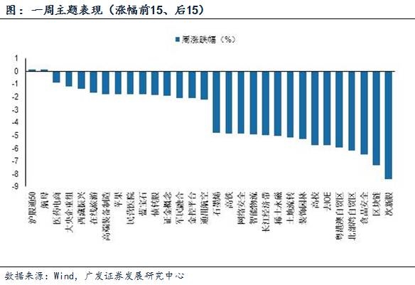 一周主题回顾:本周涨幅排名前15的主题分别是沪股通50、航母、医药电商、大央企重组、西藏振兴、在线旅游、高端装备制造、苹果、民营医院、蓝宝石、债转股、证金概念、军民融合、金控平台、通用航空。涨幅排名后15的主题分别是次新股、区块链、食品安全、北部湾自贸区、粤港澳自贸区、去IOE、高校、装饰园林、土地流转、稀土永磁、长江经济带、智能物流、网络安全、高铁、石墨烯。