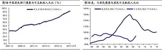 姜超认为,如果用居民债务占可支配收入的比重来衡量的话,就会发现我国居民部门加杠杆的空间已经不多了。我国居民部门债务占居民可支配收入的比重从2007年时的不足35%,已经达到了当前的90%。美国的这一比例曾在金融危机前后突破了100%,但危机爆发后迅速下滑,当前也仅是106%;而日本的这一比例从90年代以来基本都低于100%。再考虑到我国居民不仅仅向银行借贷,还会大量向父母、亲戚、朋友借款,而后者这种隐形的杠杆是没有计算在内的,所以这里的计算实际上低估了居民部门的杠杆率,也更加说明中国居民加杠杆的空间已经不多。