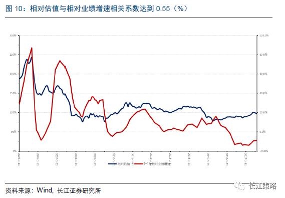 我们进一步计算了相对估值与未来两年业绩复合增速的相关关系,同样发现二者并不具有相关性,2005年以来相关系数为0.4,其中,2008年之后的相关系数仅为0.16.
