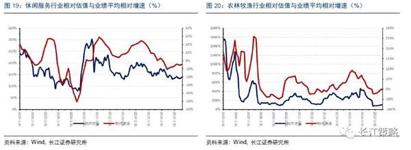 分行业来看,我们分别计算了家电、食品饮料、汽车、医药生物、纺织服装、商贸零售、休闲服务、农林牧渔各行业的历史情况,发现大部分行业均符合上述的业绩持续性溢价,也即相对估值与未来两年平均业绩相对增速有较高相关性,而与未来一年的业绩估值相关性较低。其中,仅有纺织服装相关性较低。