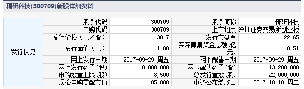 精研科技9月29日发行申购上限8500股