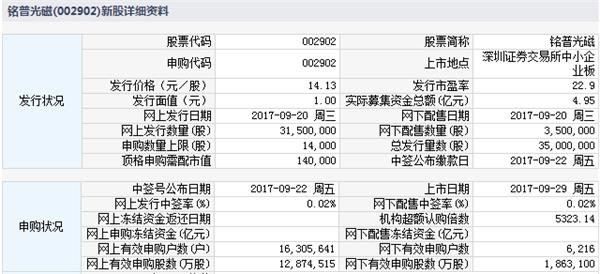 铭普光磁9月29日中小板上市定位分析