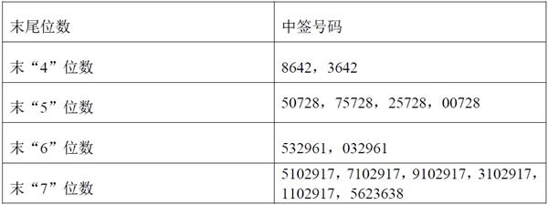 凡参与网上发行申购翔港科技A股股票的投资者持有的申购配号尾数与上述号码相同的,则为中签号码。中签号码共有22,500个,每个中签号码只能认购1,000股翔港科技A股股票。