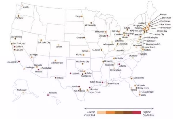 ▲美国各大主要城市信用风险级别(图片来源:摩根大通)