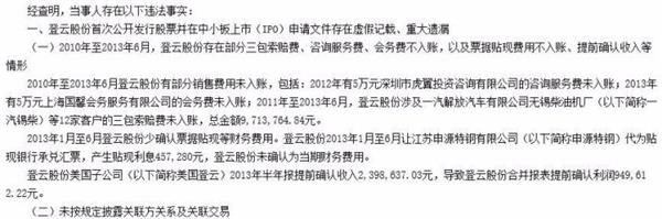 经查明, 2010年至2013年6月,登云股份存在部分三包索赔费、咨询服务费、会务费不入账,以及票据贴现费用不入账、提前确认收入等情形。