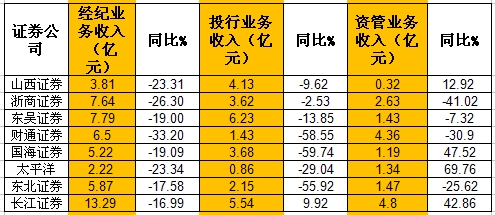 就投行业务来说,前三季度国海证券同比下滑59.74%,东北证券同比下滑55.92%,太平洋同比下滑29.05%。