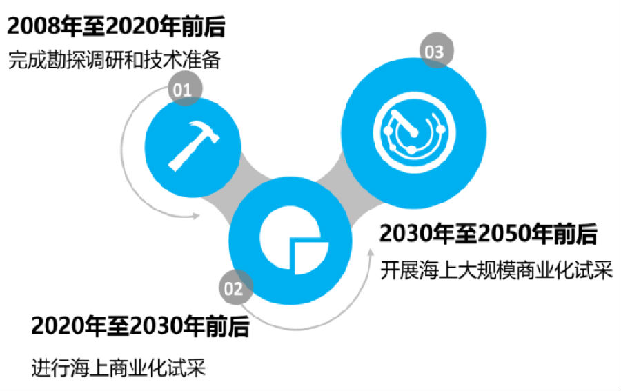 4)加强科学研发实力。结合我国海域实际地质条件和勘查开发中发现的关键科学问题,加强富集规律、成藏机理及其开采的应用基础研究,同时研发适应不同类型特点的试采、开采工艺和技术装备。