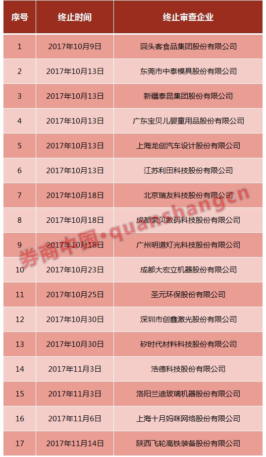 三是有的企业主动离开排队序列终止审查,目前已增加至17家;