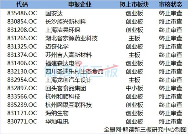 截止2017年12月8日,已有14家新三板公司选择终止审查,名单如下: