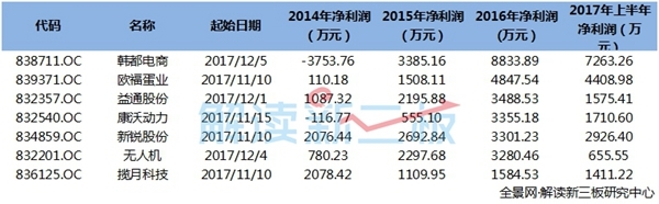 新增7家辅导企业 6家去年净利超3000万