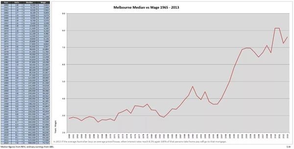 墨尔本房价/收入比在1965-2013年间节节攀升
