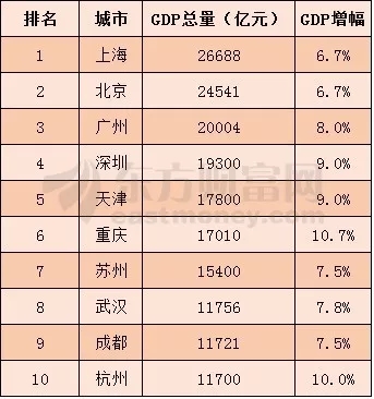 (图为2016年中国城市GDP排名)