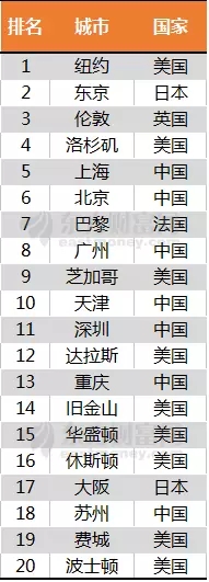 同时,在2035年的全球GDP前十大城市中,将有4个来自中国,分别是上海、北京、广州、天津;而进入全球GDP前20的中国城市还有深圳、重庆和苏州。