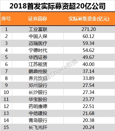 我们先来看看新股募资情况,东方财富Choice数据显示,2018年全年共有103只新股首发上市,较去年的421家,跌去近8成;首发实际募集资金1303.08亿元,较2017年的1982.98亿元,减少34.3%。