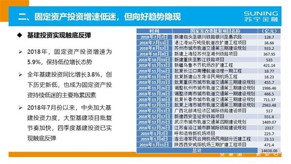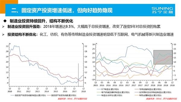 虽然经济增速持续下行,但中国经济的总量历史性地突破了90万亿元,且呈现质量不断提升、结构持续优化的向好势头,主要表现在:民间投资持续回升,民营企业家的投资信心并不十分悲观;制造业投资重新成为投资的主动力,投资结构不断优化;房地产投资虽然已见顶回落,但仍将保持韧性;基建投资也将从此前的拖累因素转变成未来的正能量。