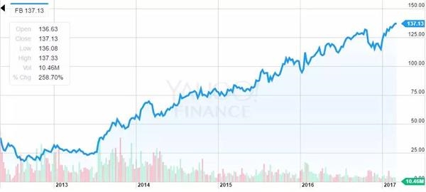 Facebook成立于2004年,八年后的2012年5月登陆纳斯达克市场,上市前估值达到1040亿美元。当年这家科技业“巨无霸”的上市曾引得全球瞩目,但却惨遭滑铁卢,IPO首日股价基本与发行价持平,一周后股价已经较发行价下跌30%,三个月后股价较发行价腰斩。但2013年以来,Facebook积极调整经营策略,并通过并购积极布局虚拟现实等新领域,重获投资者青睐,当前股价较发行价已上涨260%,最新市值近4000亿美元。