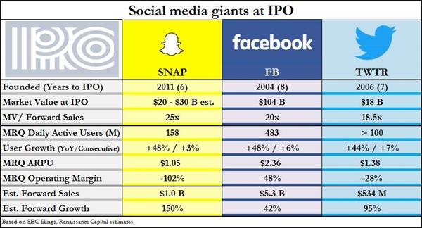 Snap火爆的上市表现,让人很难不联想到另两家社交网络商Facebook和Twitter的上市之路,而后面这两家公司的股价表现可谓各有千秋。