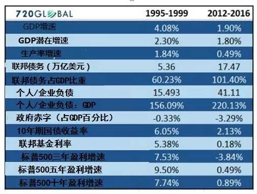 勒波维茨表示,事后证明1999年时的股票估值“非常高”,但面对经济因素的背景时,这些数字与今天相比仍显得“相对温和”。尽管有一些分析认为特朗普的刺激增长政策将为振兴经济和企业盈利前景带来助益,但这只是“有可能”,是“高度投机的”,这些政策在实施过程中还面临相当多阻力。“经济、人口和生产力发展的趋势都预示着停滞。”