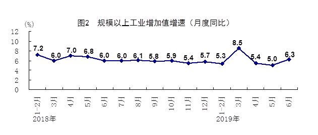 上半年,全国规模以上工业增加值同比增长6.0%,增速比一季度回落0.5个百分点。6月份,全国规模以上工业增加值同比增长6.3%,增速比5月份加快1.3个百分点,环比增长0.68%。上半年,分经济类型看,国有控股企业增加值同比增长5.0%,股份制企业增长7.3%,外商及港澳台商投资企业增长1.4%。分三大门类看,采矿业增加值同比增长3.5%,制造业增长6.4%,电力、热力、燃气及水生产和供应业增长7.3%。工业战略性新兴产业增加值同比增长7.7%,快于规模以上工业1.7个百分点。高技术制造业增加值同比增长9.0%,快于规模以上工业3.0个百分点,占全部规模以上工业比重为13.8%,比上年同期提高0.8个百分点。新能源汽车、太阳能电池产量同比分别增长34.6%和20.1%。
