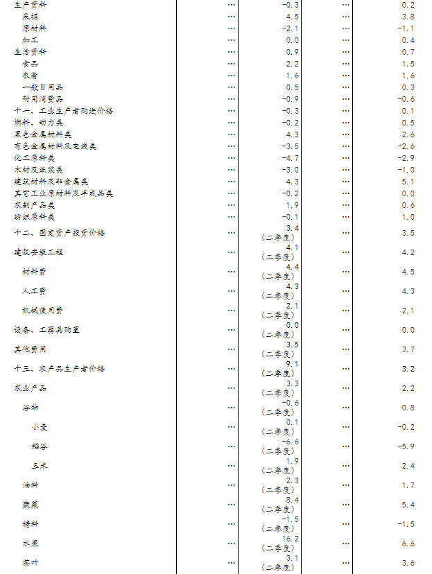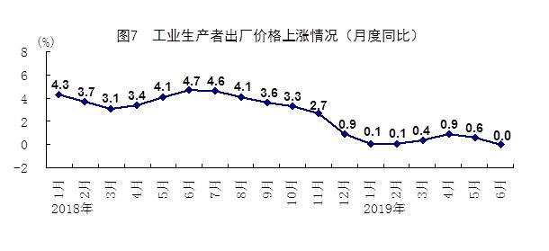 上半年,全国工业生产者出厂价格同比上涨0.3%,涨幅比一季度扩大0.1个百分点。6月份,全国工业生产者出厂价格同比持平,环比下降0.3%。上半年,全国工业生产者购进价格同比上涨0.1%,涨幅与一季度持平。6月份,全国工业生产者购进价格同比下降0.3%,环比下降0.1%。