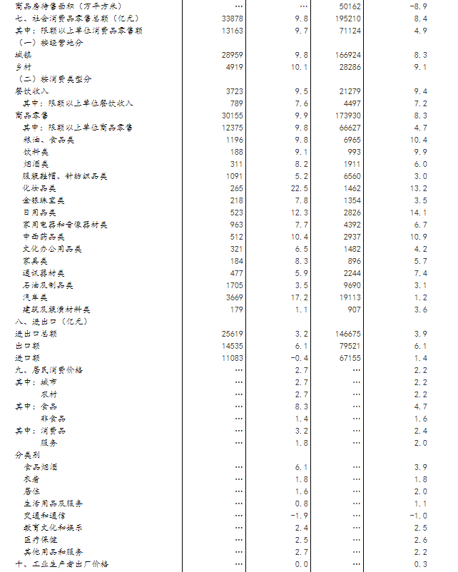 (1)国内生产总值、规模以上工业增加值及其分类项目增长速度按可比价计算,为实际增长速度;其他指标除特殊说明外,按现价计算,为名义增长速度。