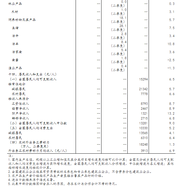 (9)全国居民人均可支配收入中位数是指将所有调查户按人均可支配收入水平从低到高顺序排列,处于最中间位置的调查户的人均可支配收入。