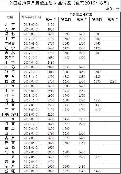 据人社部网站消息,7月24日,人社部官网更新全国各地区月最低工资标准情况和小时最低工资标准情况(截至2019年6月)。数据显示,上海月最低工资标准为2480元,为全国最高;北京小时最低工资标准为24元,为全国最高。