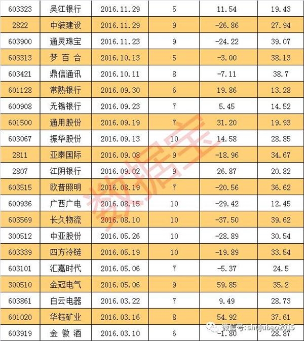 上市3个月以内的次新股中,家家悦、兴业股份等个股开板后股价仍大跌超过15%,贵广网络、百合花、森特股份等开板后股价也处于下跌状态。上市3-6个月次新股中,上海银行、杭州银行、华安证券、三角轮胎、中装建设、通灵珠宝等个股开板后股价大跌均超过10%;上市6-12个月次新股中,广西广电、中亚股份、四方冷链、长久物流、欧普照明、亚泰国际等个股开板后跌幅较大。