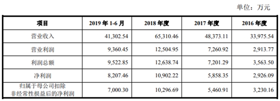 2016年至2018年以及2019年上半年,派克新材的营业收入分别为3.4亿元、4.84亿元、6.53亿元、4.13亿元,归母净利润分别为2926.09万元、5858.35万元、1.09亿元、8207.46万元。