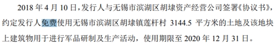 另外,虽然派克新材在首份申报稿中披露,公司2020年12月31日前可以免费使用无锡市滨湖区胡埭镇莲杆村3144.5平方米的土地及该地块上建筑物用于进行军品研制及生产活动。但对免费使用的深层资料,派克新材却未披露。