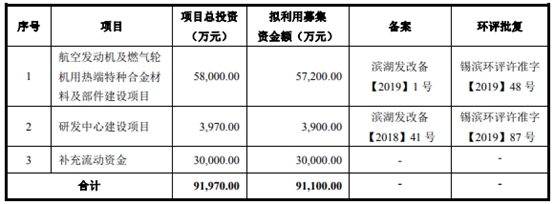 此次IPO,派克新材拟募集资金9.11亿元,其中最大的募投项目为航空发动机及燃气轮机用热端特种合金材料及部件建设项目,拟使用62.79%的资金。