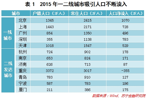 如果非要用数据论证一下,那么,查阅2015年全国一线城市和二线发达城市的人口净流入数据就会发现:国内大多数一线城市和二线城市仍然持续保持人口净流入,而北上广深的人口净流入遥遥领先(参见表1)。所以,“逃离”也不过是大多数人发发牢骚罢了,终究还是舍不得离去。