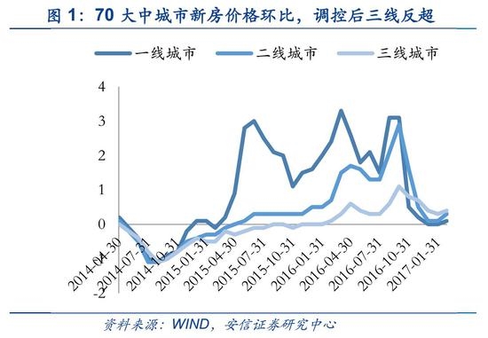 投资要点一:热点城市地产调控升级,三四线地产销售却未必熄火。热点城市如此次北京的地产调控升级,将延长购买力的积累时间,其效应是短期销量下降,但短期价格不会下跌,中期的上涨预期不会改变。去年9~10月上海等热点城市的调控与其性质类似,已经证明这点。更重要的是,去年调控升级之后,我们看到的是三四线城市楼市升温,去库存政策正在得到进展,实际上,在热点城市与三四线城市价差拉大之后,热点城市房产购买又受到限制,那么其溢出效应就会开始显现,而如果热点城市涨价还在继续,资金很难将其舍弃进入三四线城市。总的来说,我们认为目前,三四线城市房地产去库存正在出现希望的曙光,去库存导向下政策对于三四线依然友好,三四线城市房地产销售与投资超预期才是今年经济预期的核心问题,对于这个问题的判断,我们觉得并不应该被北京等热点城市地产调控升级所改变。