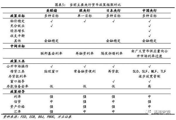 一般而言,一国货币政策框架包括最终目标、中间目标和政策工具三部分。其中,最终目标是货币政策制定和执行的出发点和最终归宿,而中间目标则是央行为了实现其最终目标而选择的作为调节对象的目标,要求其具有可测性和可控性,并且与最终目标具有较高的相关性。而政策工具则是央行为实现中间目标而采取的具体手段。