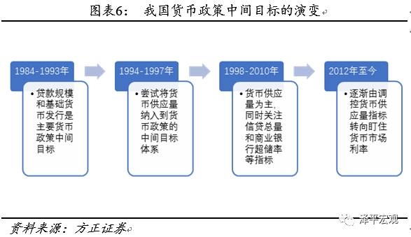 自1984年人民银行专门行使中央银行职能以来,我国的货币政策中间目标经历了由直接调控信贷和基础货币向调控货币供应量(M1、M2)发展,并进一步转向利率调控的发展历程。