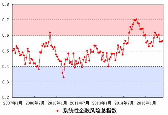 根据1、2月份各类宏观经济指标测算,最近三个月(12、1、2月)的系统性金融风险总指数分别为0.55、0.55、0.56。均回落到中等风险区域(0.4-0.6区域).