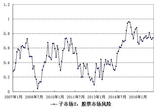 2017年1-2月份,各类经济数据出台,参考中国人民银行工作论文《系统性金融风险的监测和度量—基于中国金融体系的研究》一文,国信证券经济研究所跟踪测算了最新的系统性金融风险指数以及构成的7个子市场各自的风险指数。