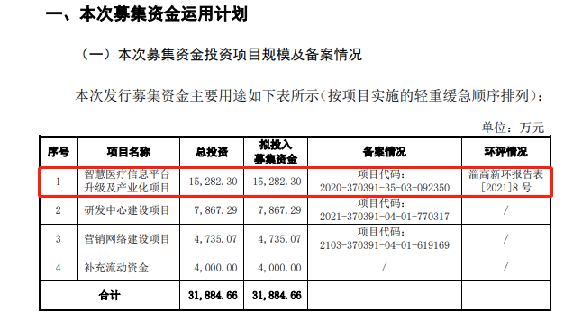 亚华电子招股书披露,公司此次上市募投的另一项目是投资,7,867.29万元用于研发中心建设。而在中华人民共和国生态环境部网站上,记者还发现,2020年10月,亚华电子对“智慧病房服务交互系统科研创新平台”项目进行环评备案。信息显示,上述项目总投资高达10930万元,项目位于淄博高新区仪器仪表产业园,占地约10亩,建设1栋第三方检测中心大楼,建筑面积约7000平。亚华电子称,项目建成后实现以“智慧病房服务交互系统”为主体框架,完成“智慧病房交互”、“智慧护理”、“远程会诊探视”、“智慧物联网”,实现医护患立体交互、医护业务流程智能化再造、护理品质管理、医护内外网远程交互、病区人员与物资管理、病区安全管理等。该项目2021年12月8日拟投入生产运营。