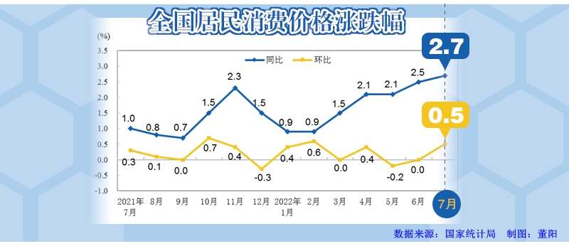 7月份全国居民消费价格同比上涨2.7%