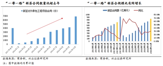 近期从我们对相关上市公司的调研了解,2016年“一带一路”海外业务的爆发原因主要有两个方面:1)大部分公司在过去两三年持续增加海外投资规模,主要用于铺销路、建人脉和办事处,产生的利好已于去年开始体现;2)国家支持政策开始落地,尤其是资金方面。国家层面对一带一路的支持政策包括补贴、优惠性税收等,但考虑到了项目进行的安全性,资金支持(贷款)是企业最为看重的。2016年开始,金砖银行、亚投行等开始正式运作,前期多个因资金问题停滞的项目在今年获得贷款后均已正常启动。