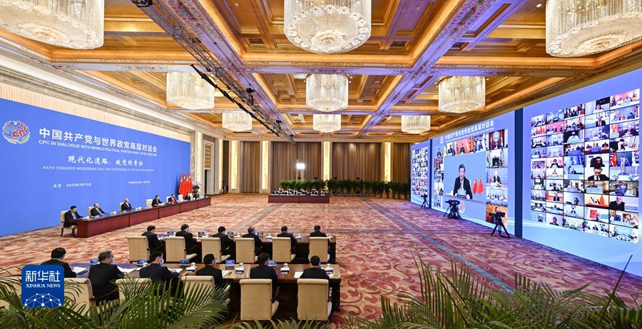 3月15日,中共中央总书记、国家主席习近平在北京出席中国共产党与世界政党高层对话会,并发表题为《携手同行现代化之路》的主旨讲话。新华社记者 殷博古 摄