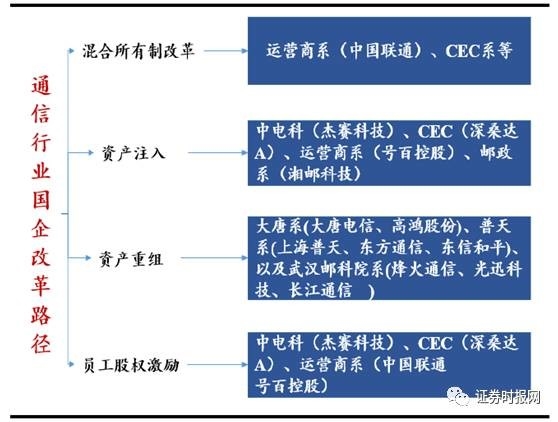方正证券通信行业首席分析师马军称,在中国联通混改试点催化下,后续通信板块的国企概念投资机会显著,改革路径为混改、资产注入(证券化)、重组、员工激励。