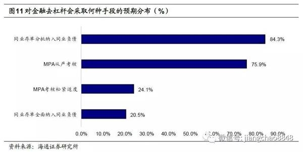 根据我们的调查结果,大部分受访者预期同业存单会分批纳入同业负债,而MPA则会从严考核。具体来看,有84.3%的受访者选择了同业存单分批纳入同业负债,有75.9%的受访者选择了MPA会从严考核,预期一致性较高。