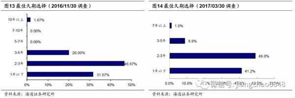 上次调查时,有47%的受访者选择2-3年为最佳久期;32%受访者选择1年及以下为最佳久期。