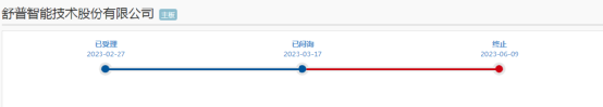 上交所6月9月更新信息显示,因舒普智能及其保荐人撤回发行上市申请,根据《上海证券交易所股票发行上市审核规则》第六十三条的相关规定,上交所终止其发行上市审核。